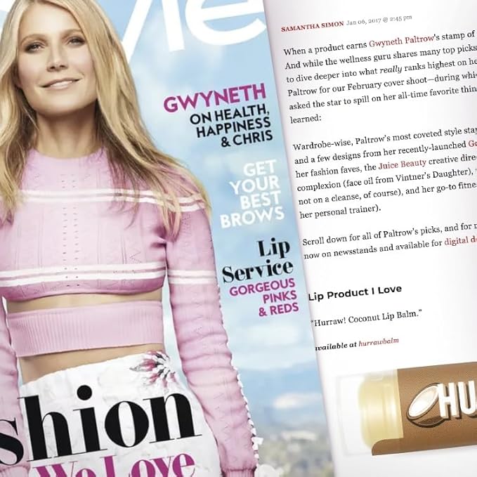 - FIVE 4.8g/.17oz Oval Tubes of Coconut Lip Balm packaged in a white HURRAW! branded pillow box. Rich, raw coconut oil enriches the fabulous flavor of this balm and continues to put it at the top of our favorites list. Not too beachy, a little toasty... coconut perfection. Made with certified organic, vegan, and raw ingredients. Hurraw! Lip Balms are certified 100% all natural origin, cruelty, and gluten-free. Non-GMO. Bee, Shea, Soy, and Palm Free.