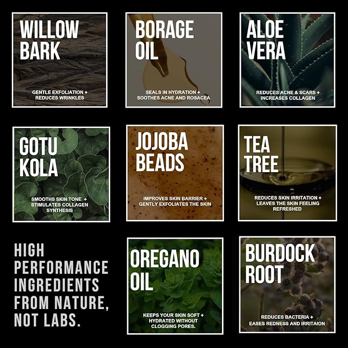 - 🏴 CLEAN INGREDIENTS: Packed with potent natural ingredients including Organic Aloe Vera, Organic Rosehip, Tea Tree Oil, Organic Jojoba and Burdock Root. Our men's face wash revitalizes and promotes cell turnover to defend against signs of aging. Rest assured, it's cruelty-free and formulated to fuel your skin without harmful chemicals.