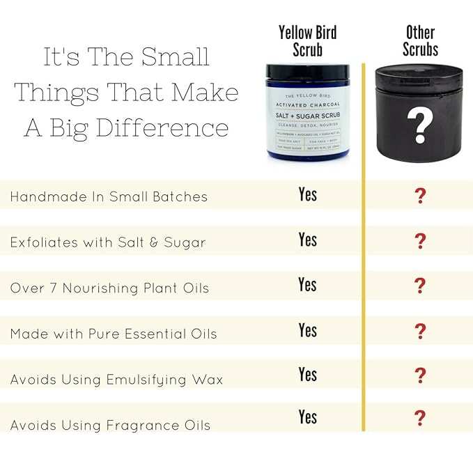 - Baby Soft Skin - Rediscover the skin of your youth. Hydrate and exfoliate with our salt & sugar scrub to get the most supple skin. Made with mild wholesome ingredients that won’t irritate. Use as a gentle face scrub and exfoliating body scrub.