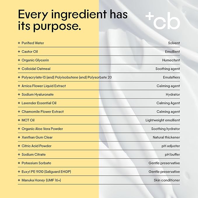 - Botanical Soothing Blend: Our advanced botanical blend of Manuka honey, colloidal oatmeal, and Arnica Montana flower extract helps reduce irritation and itching while retaining moisture and supporting the skin barrier for effective eczema treatment