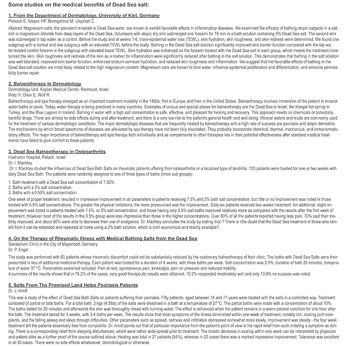 - Published scientific studies show that 80%-90% of patients undergoing Dead Sea mineral treatments experience significant improvement in skin conditions