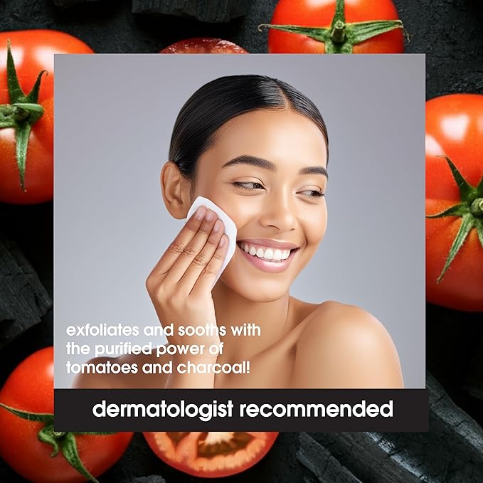 - FORMULATED WITH CHARCOAL to help remove dirt, oil and bacteria and antioxidant-rich Tomatoes to help balance oil, these gentle black towelettes leave skin clean and detoxified.