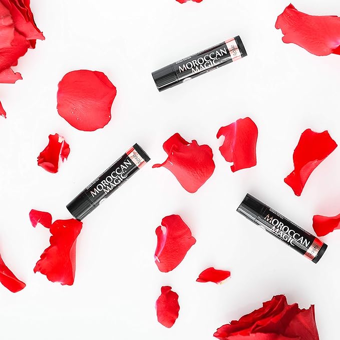 Moroccan Magic Organic Rose Lip Balm 3 Pack | Ultra-Hydrating Argan & Essential Oil Lip Moisturizer + Vitamin E | Natural Chapstick for Dry Lips | Smooth, Non-Toxic | Organic Lip Balm