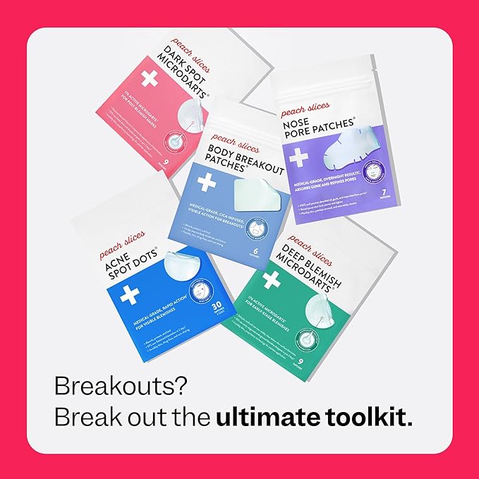 - Peach Slices Acne Spot Dots:The Peach Slices Acne Spot Dots are small, translucent and fast-acting acne patches that actively absorb a developing blemish or an already-present pimple. The Peach Slices Acne Spot Dots are non-drying (so no flaking!) and come in a variety of sizes that can be worn night or day with or without makeup.