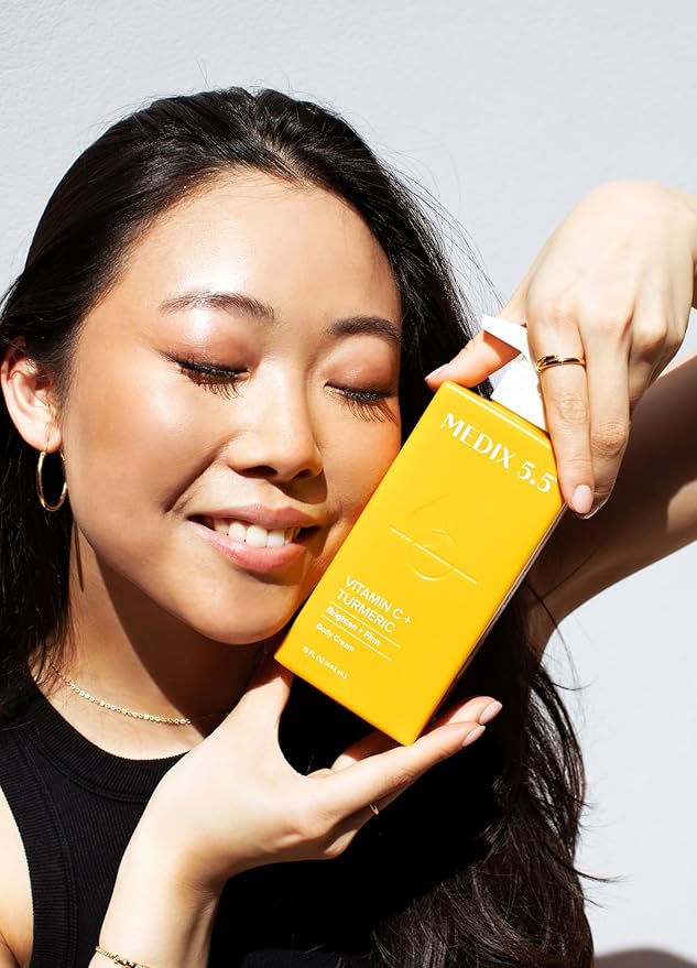 - ILLUMINATED SKIN โ This Medix 5.5 Vitamin C Body Cream infused with Turmeric helps soften the look of aging skin and uneven looking skin tone. This rich, velvety formula provides rich hydration, keeping skin visibly smooth, soft, & refreshed without a greasy finish. Skin feels hydrated, nourished and visibly radiant throughout the day. This lightly scented Vitamin C body cream revives the look of uneven skin, the look of dark spots, rough looking skin, crepey skin, wrinkles, & more.