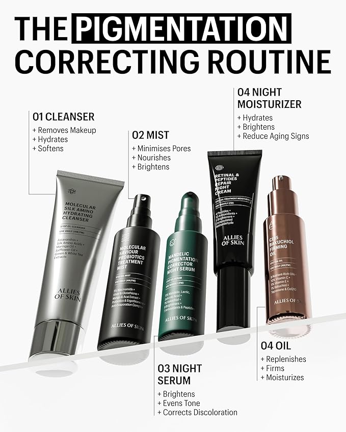 Allies of Skin Mandelic Pigmentation Corrector Night Serum | Gentle Acne Face Serum with Bakuchiol, Niacinamide & Salicylic Acid | Anti-Aging Formula to Reduce Pores and Even Skin Tone (1 oz)
