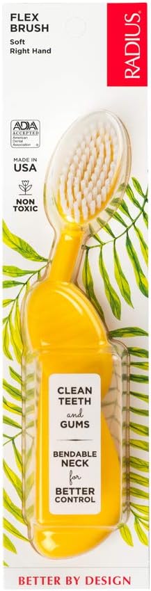 RADIUS Flex Brush with Soft Bristles Toothbrush BPA Free & ADA Accepted Designed to Improve Gum Health & Reduce Issues - Right Hand - Yellow/White - Pack of 1