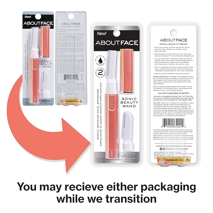 About Face Sonic Beauty Wand - Electric Facial Hair Remover and Bonus Eyebrow Shaper, Ideal for Shaving, Exfoliating and Brow Shaping, Epilator for Men & Women
