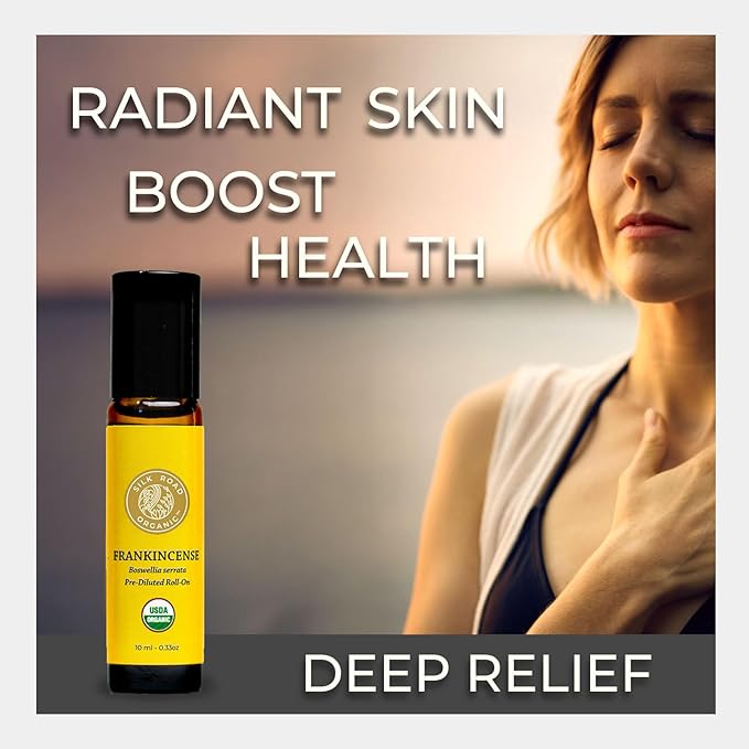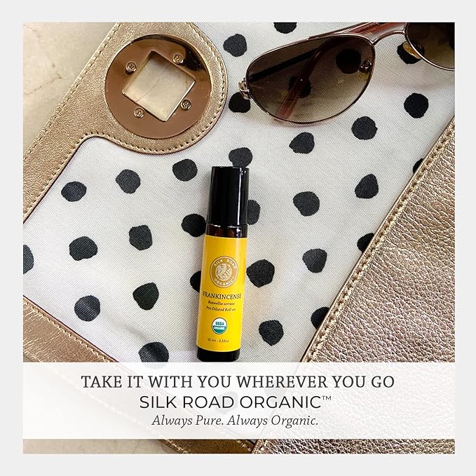 Silk Road Organic Frankincense Serrata Essential Oil Roll on, 100% Pure USDA Certified Aromatherapy for Skin Health, Aging, Fine Lines & Body Aches - 10 ml Roller