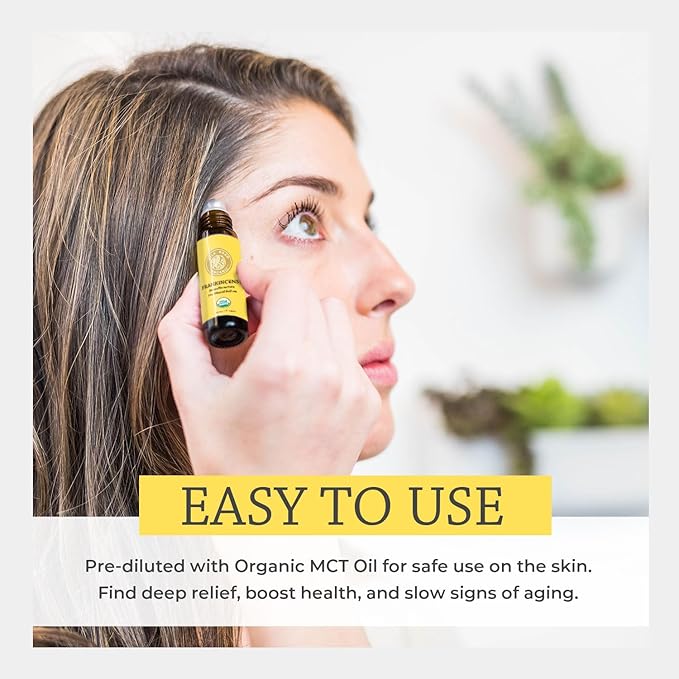 - 100% PURE, NATURAL, NON-GMO USDA Certified Organic essential oil roll-on. Considered a deeply spiritual oil, Frankincense is described as, earthy, woody, spicy, and at the same time soft, sweet and citrusy. Overall, it’s a complex and wonderfully balanced aroma that helps calm the mind, body, and soul.