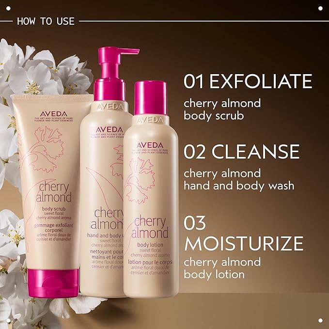 - Moisturizing Body Lotion: Aveda Cherry Almond Body Lotion is a lightweight daily lotion that leaves skin feeling touchably soft and smooth. Sweet almond and cherry blossom extract soften skin.