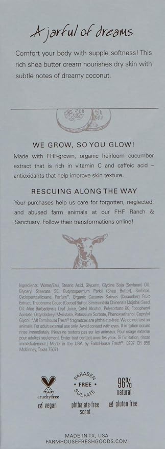 FarmHouse Fresh Body Lotion, Shea Butter. Moisturizing Cream, Coconut Cream Shea Butter for Body. Coconut Lotion, 8 Fl Oz