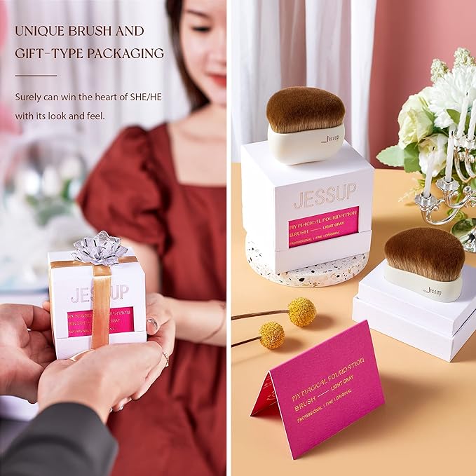 - MULTI-TASK APPLICATION: This Jessup high-quality foundation brush gives you a smooth stroke from different angles while applying the foundation easily to your skin. Or swipe your sunscreen lotion onto your arm, leg, and other parts of the body.