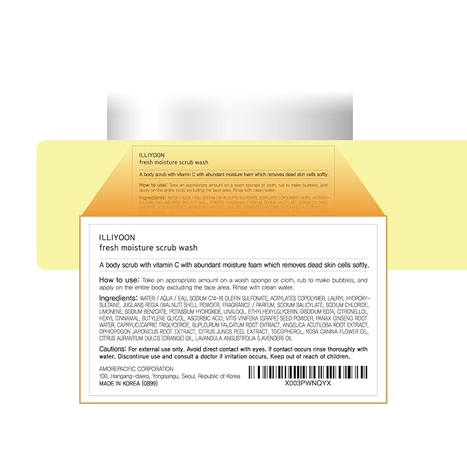 ILLIYOON Fresh Moisture Body Scrub Wash 400ml(13.53 Fl Oz) Vitamin C, walnut shell and soft grape seed powder, Exfoliating Scrub for Silky Smooth Skin