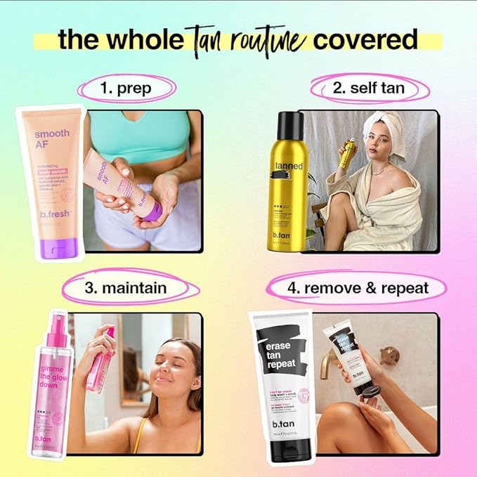 - AIRBRUSHED TANNING MIST. tanning made easy. darkest 1 hour bronzing mist. spray on. get dark. glow on.
