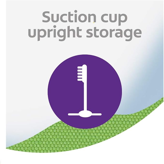 - Built-in suction cup toothbrush holder for easy and fun upright storage