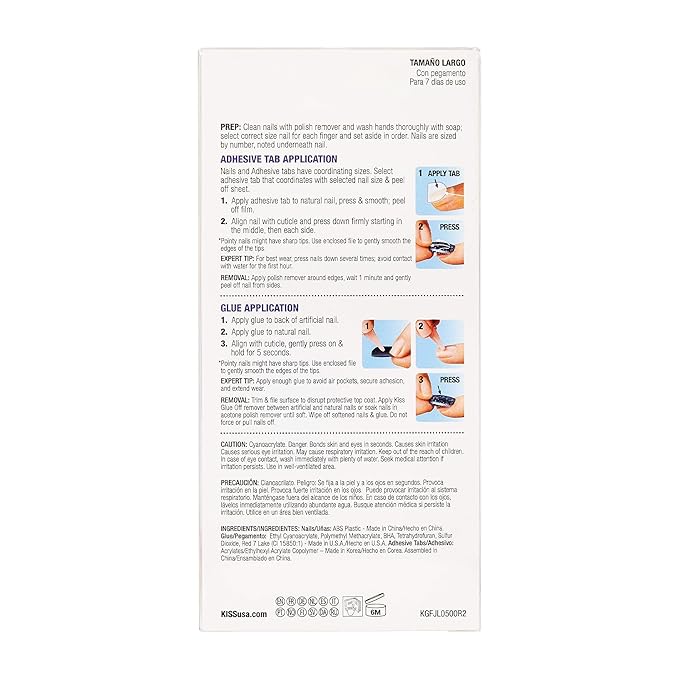 - Stick with KISS: Our press-on nails and glue-on nails take minutes to apply, and they stay on for up to a week; Fake nails fit perfectly over your own nails with no mess or fuss; Glue-on nails work best with KISS PowerFlex Nail Glue, sold separately