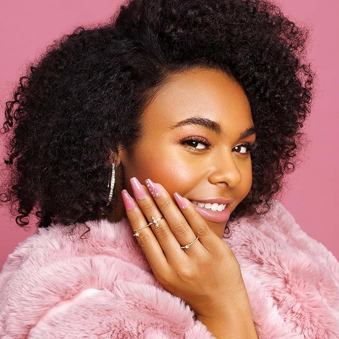 - High Shine Sculpted Nails: Sheer color, a little texture, and a colored glass like effect that is beyond WOW; Manicure kit includes 28 nails in 14 sizes, pink gel nail glue (net wt. 0.07oz.), 24 adhesive tabs, mini file, and manicure stick