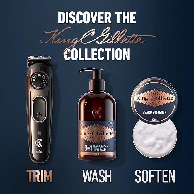 King C. Gillette Cordless Beard Trimmer for Men, Kit includes 1 Trimmer, 3 Interchangeable Combs, 1 Cleaning Brush, 1 Charger, 1 Travel Bag, BLUE