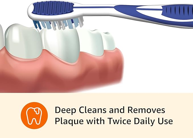 - Soft bristles; angled end bristles easily reach back teeth