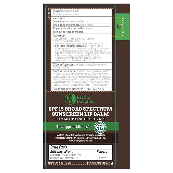 - BROAD SPECTRUM SUN PROTECTION โ With SPF 15 (sun protection factor), our Earthโs Daughter SPF lip balm protects against both UVA and UVB rays. This broad spectrum protection combined with our premium organic moisturizing ingredients provides the ultimate all season chapped lip stick.