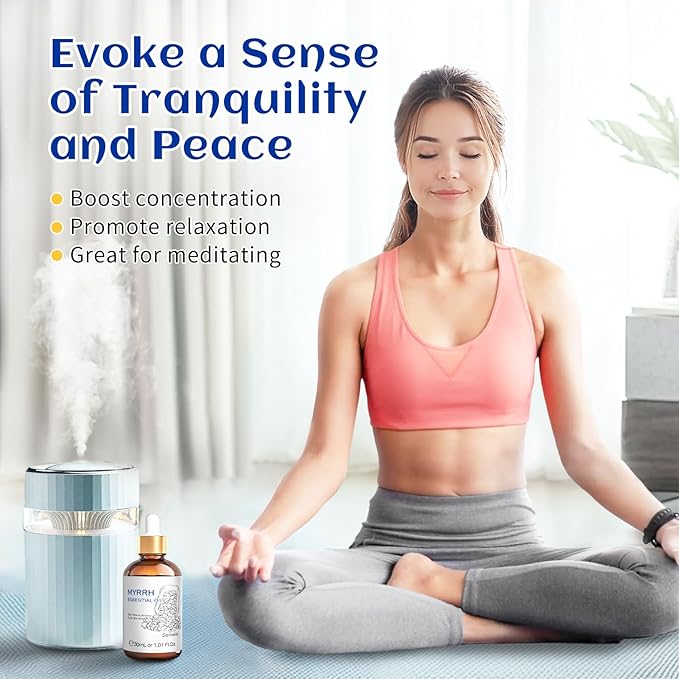 - Multiple Use Scenarios: Add 3-4 drops of myrrh essential oil to the diffuser to help create a calming and relaxing atmosphere for yoga, meditation, reading, massage, aromatherapy, saunas, spas, bedrooms, living rooms, bathrooms, showers and more