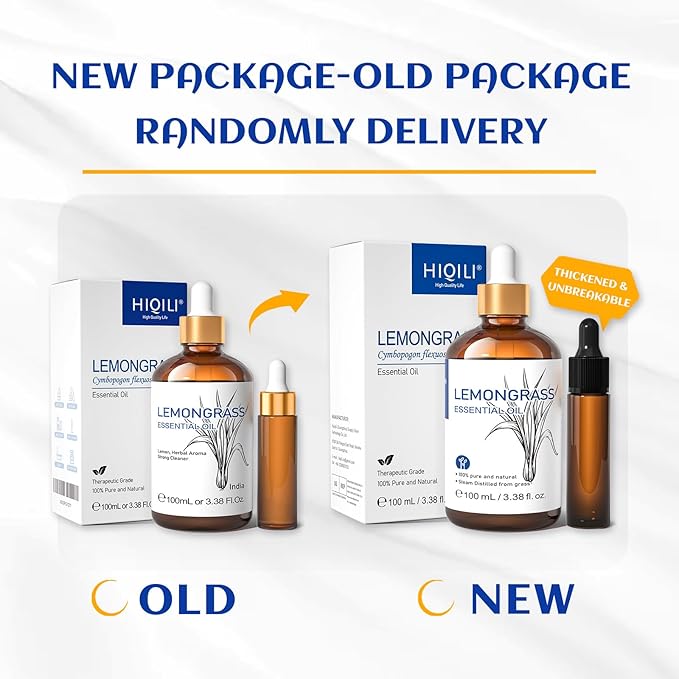 HIQILI Lemongrass Essential Oil, 100% Pure Natural Undiluted Premium Oils - 3.38 Fl. Oz