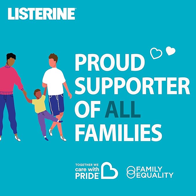 - 1-liter bottle of Listerine Cool Mint Antiseptic Mouthwash in special edition Care with Pride packaging kills 99.9% of germs that cause bad breath, plaque and gingivitis for a fresher and cleaner mouth than brushing alone