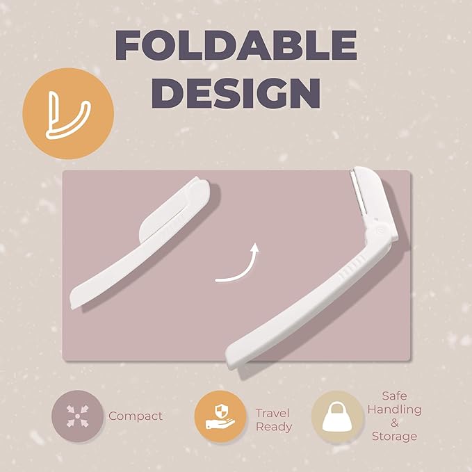- Bye-Bye Peach Fuzz: Quickly remove any facial hair in minutes. The small, foldable blade makes it easy to safely transport the razor in any makeup bag or purse so it’s there to use whenever a touch-up is required.