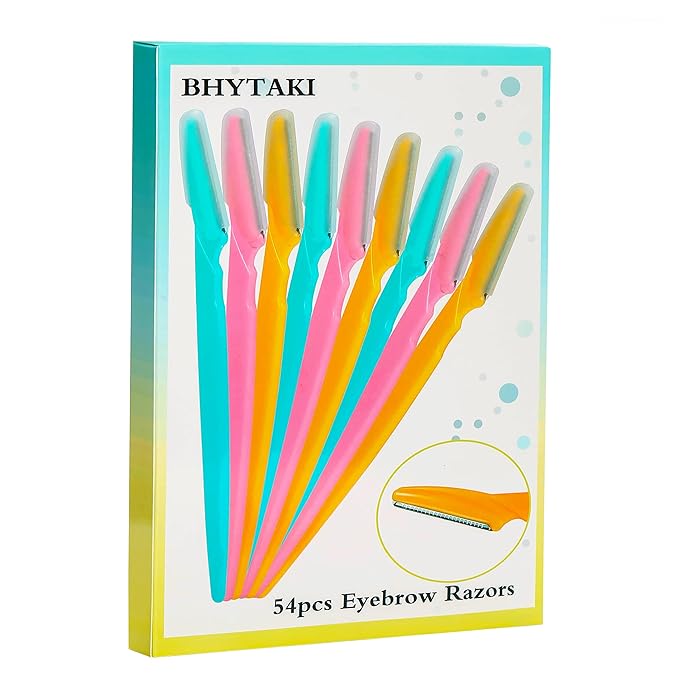 - 【54 Pcs in Package】3 Vibrant colors: blue, pink, yellow. 18 Pcs per color, total 54 pcs. Our eyebrow razors are different colors that can be used on different body parts to distinguish them, that more cleaner.
