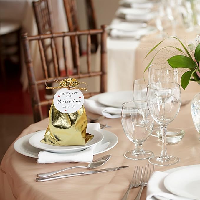 - Package Includes: 100 x organza gift bags,100 x thank you tags.