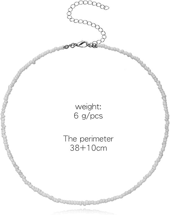 - White Beaded Necklace chain choker approach 14inch,with 2 inch extension chain,adjustable for you.