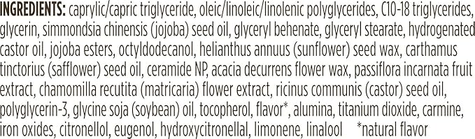 - INFUSED AND ENRICHED: Passion fruit and chamomile flavor is a luscious treat for the senses, while passion fruit extract and ceramides help maintain your lip’s natural moisture barrier
