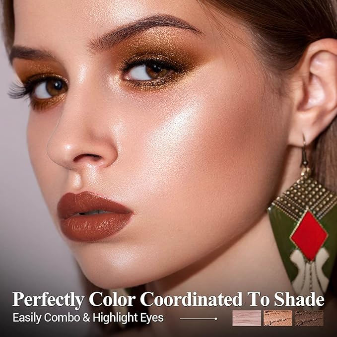 - Matte And Shimmer Eyeshadow Stick: Including 3 colors eye stick which are brown, auburn, nude pink eye shadow stick. You can be used alone or a mix of colors to create beautiful eye looks! From naturally daily work makeup to charming smoky makeup, compliant your all makeup needs