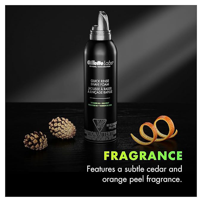 Gillette Labs Quick Rinse Lightweight Shave Foam for Men, Shaving Foam that Helps Protect the Skin, 8.1 OZ