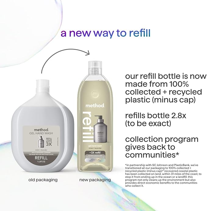 - Refills your method gel hand wash bottle 2.8X (to be super exact).