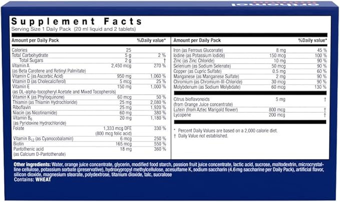 - 7 day supply. Everything you need in a convenient daily pack. Take the contents of 1 Daily Pack (1 vial of liquid and 2 tablets) with or after a meal once every day. Shake vial well before consuming. Included in each purchase 7 20-ML VIALS (140 ML TOTAL) & 14 TABLETS