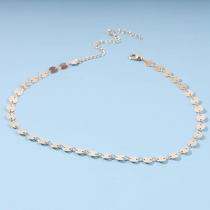 - Gold Sequin Choker Necklace made of high quality alloy,2 Seperated Chain,easy to match clothes.