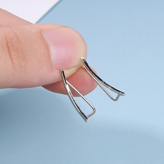 - Silver Curved Bar Earrings Studs with real images.Length around 0.7inch.2Pcs.