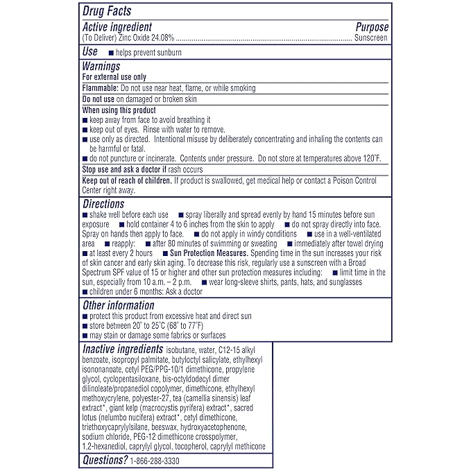- Nourishing Botanicals: This spray sunscreen is made with nourishing botanicals (tea leaf, sea kelp and lotus extract)