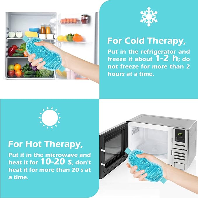 - 👀Hot&Cold Therapy: Using the principle of physical therapy, wear the gel eye mask after cooling or heating for 8-15min to help you relieve fatigue and stress. For cold therapy,place it in the refrigerator for about 1-2h; for heat therapy, place it in a microwave oven and heat it for 10-20s.