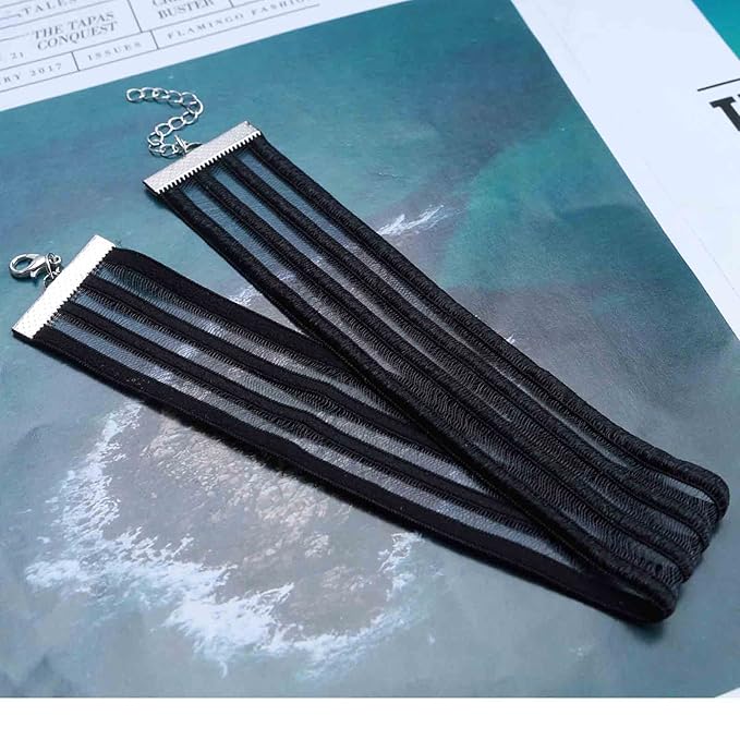 Bohemia Lace Choker Necklace Short Black Organza Necklace Gothic Wide Black Collar Necklace Punk Tattoo Choker Chain Necklace Jewelry for Women and Girls Gifts