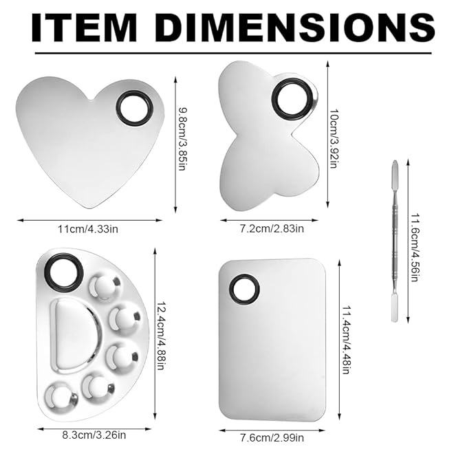 - 【Good Combination】4 sets of makeup palettes in square, semicircle, butterfly, heart shaped, coming with 4 pieces spatulas, perfect to custom multiple blending of colors simultaneously.