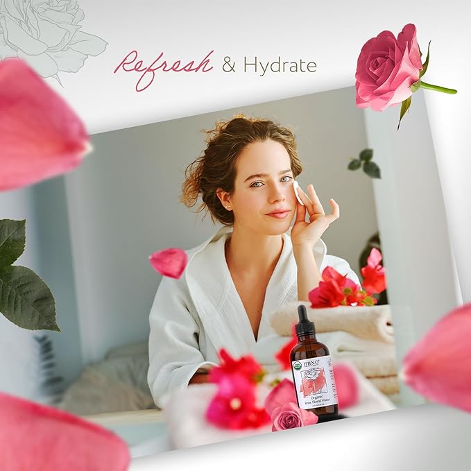 HBNO California Bottled Organic Rose Water for Face 4 fl oz (120ml) - USDA Certified Organic Rose Water Spray for Cleansing- Pure Rosewater for Hair - Rosewater Face Mist