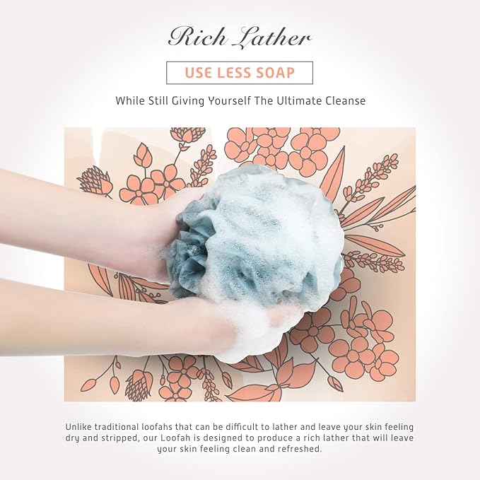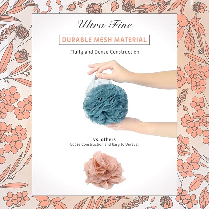 - QUALITY CONSTRUCTION - The loofahs are fluffy and durable with ultra fine mesh material, making them the perfect choice for your daily exfoliating routine. They are gentle on your skin, providing a comfortable and enjoyable experience.