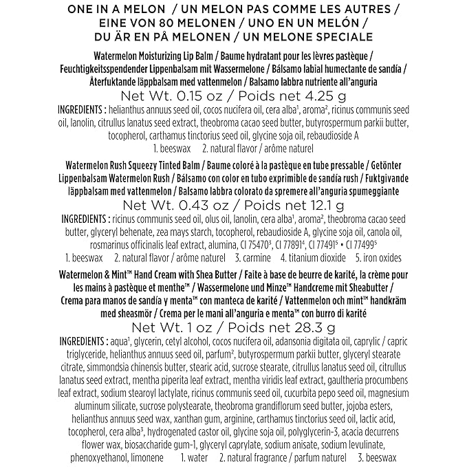 Burt's Bees Mothers Day Gifts for Mom, 3 Self Care Products, You're One in a Melon - Watermelon & Mint Hand Cream, Watermelon Lip Balm & Watermelon Rush Squeezy Tinted Lip Balm (Packaging May Vary)