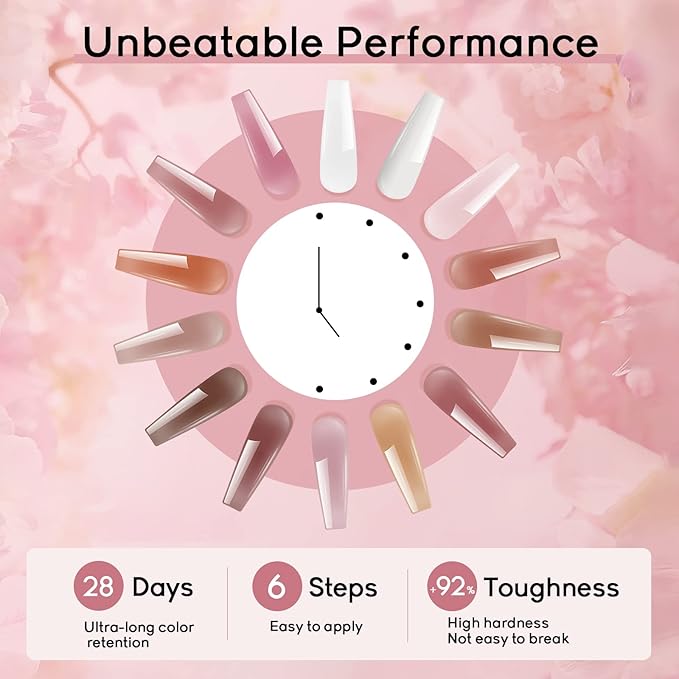 - 【HIGH QUALITY SALON QUALITY】:JEWHITENY poly gel nail kit is made of healthy ingredients, which is non-toxic, cruelty-free and no harm to nails. Thanks to the upgraded formula,poly nail gel kit color is full , natural looking, light and has an impeccable shine finish.By using JEWHITENY poly nail extension gel, your nail art will not be easy to peel off and non-yellowing.