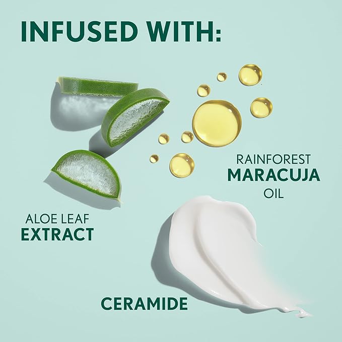- Infused with cellulose plant fibers, aloe leaf extract, ceramide and sustainably sourced rainforest maracuja oil.