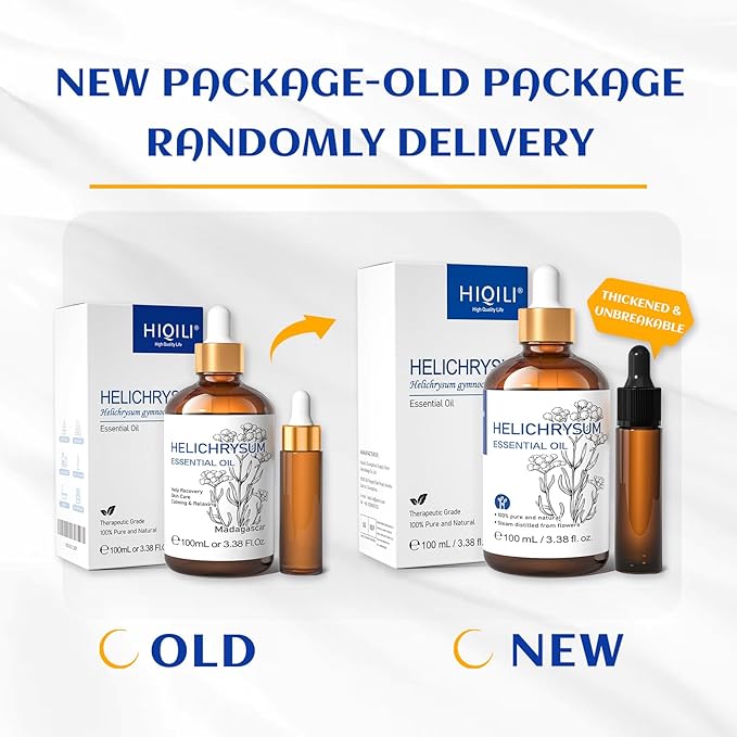 HIQILI Helichrysum Essential Oil for Skin Nourish, Undiluted & Natural, Relieve Fatigue in Body Massage, Reduce Fine Line and Wrinkle, Aromatherapy Diffuser, DIY Floral Scented Gift -100ML