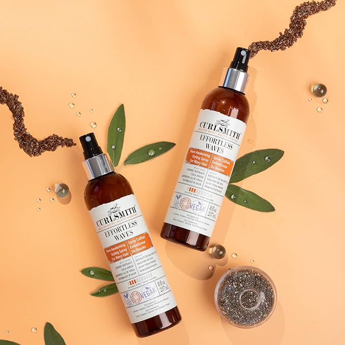 CURLSMITH - Effortless Waves Styling Spray, Lightweight and Moisturising, Reduce Frizz, Natural Look, For Wavy and Curly Hair, Vegan (8oz)